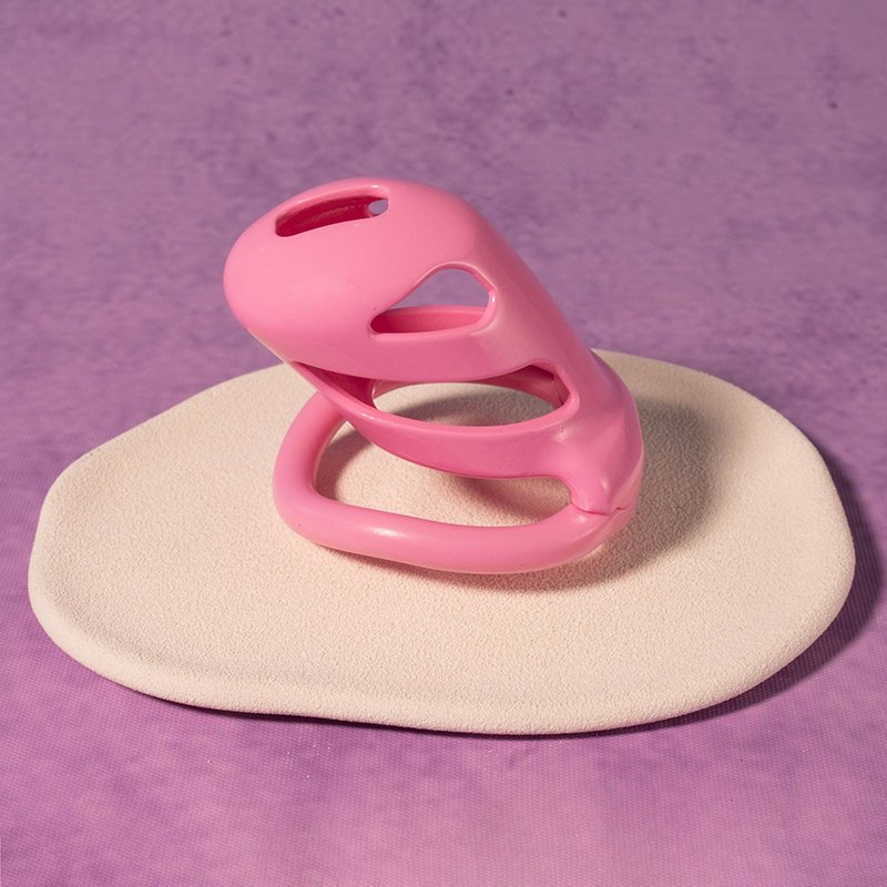 This chastity cage is crafted from smooth resin with a rounded, streamlined design and refined detailing. The front features heart-shaped and oval ventilation holes for optimal airflow and a stylish touch. With an inner diameter of 34mm, it comes in two lengths: Medium (27.5mm) and Large (37.5mm), meeting different preferences. Available in elegant black and soft pink, the design combines both aesthetics and practicality.