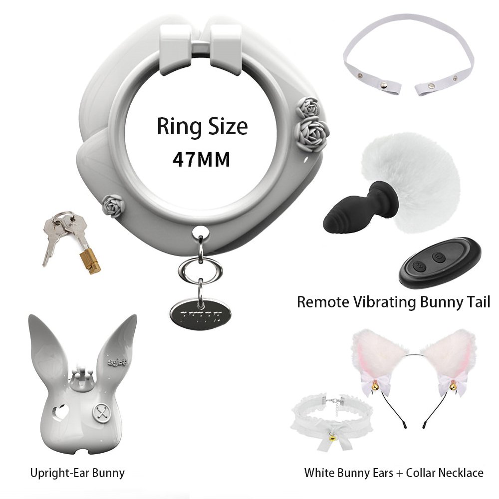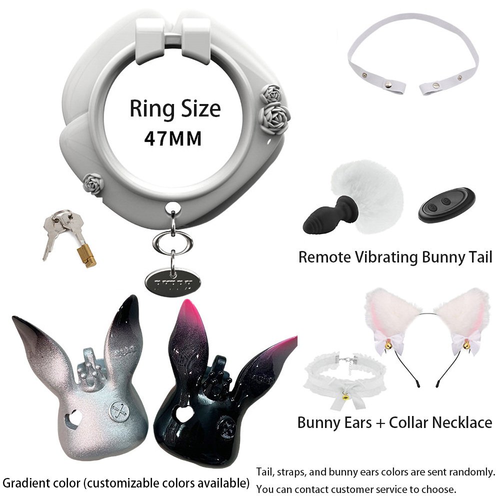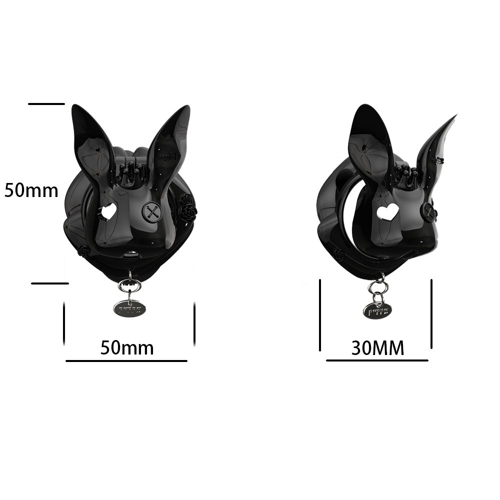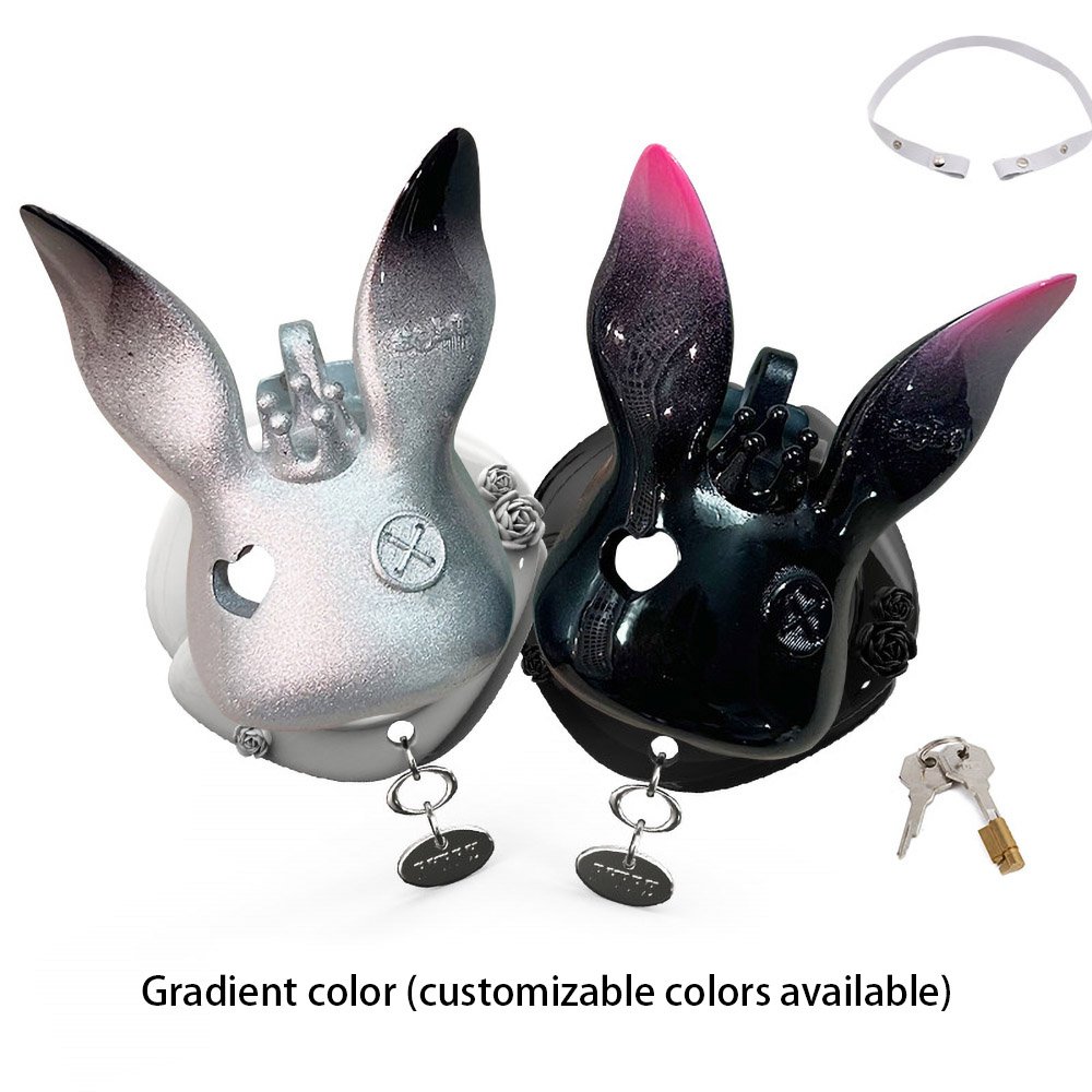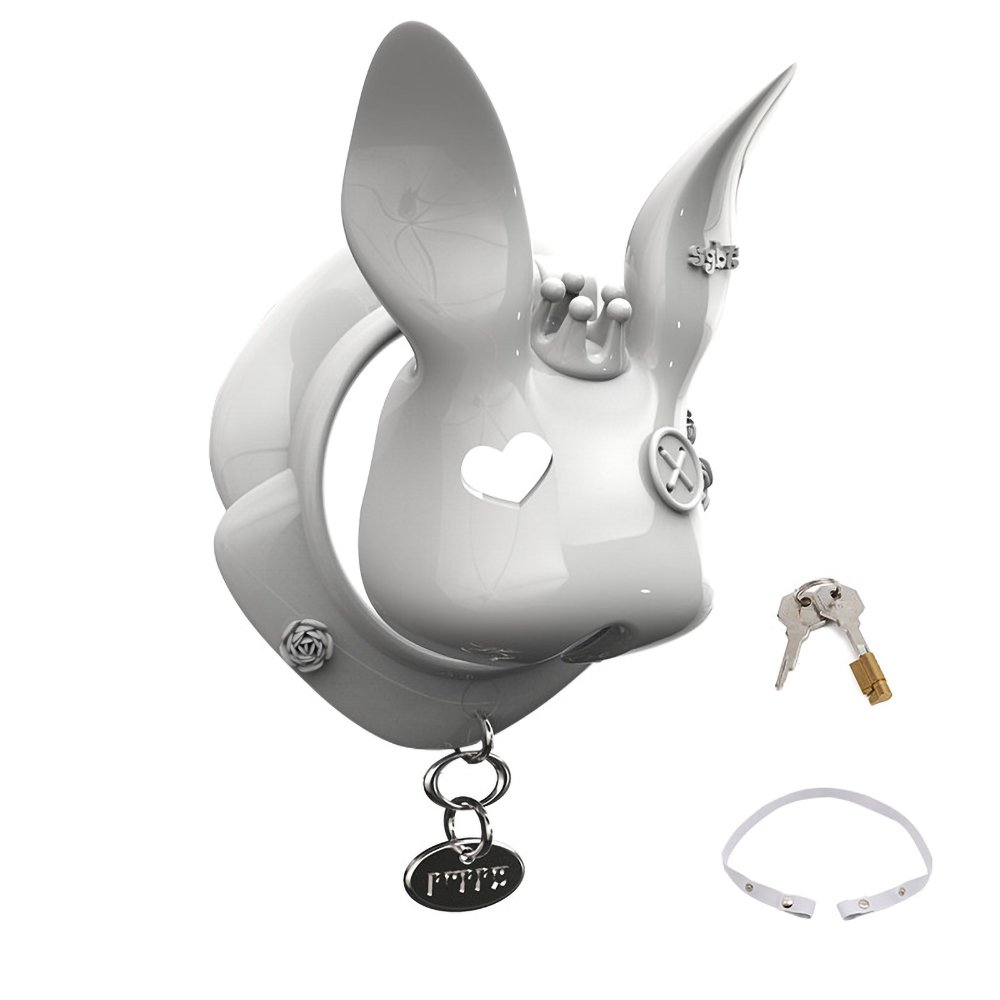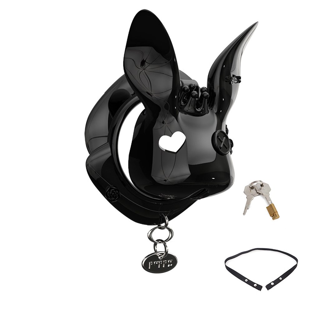This uniquely designed upright-ear bunny chastity cage will add a distinctive charm to your collection. Crafted from high-quality resin and treated with a premium high-gloss polishing process, it presents a deep, mirror-like luster that is silky to the touch and visually striking.The exquisite craftsmanship is evident in every detail: the charming hollow heart-shaped eyes paired with delicate side-button accents infuse this avant-garde design with a playful and sophisticated Sissy aesthetic.