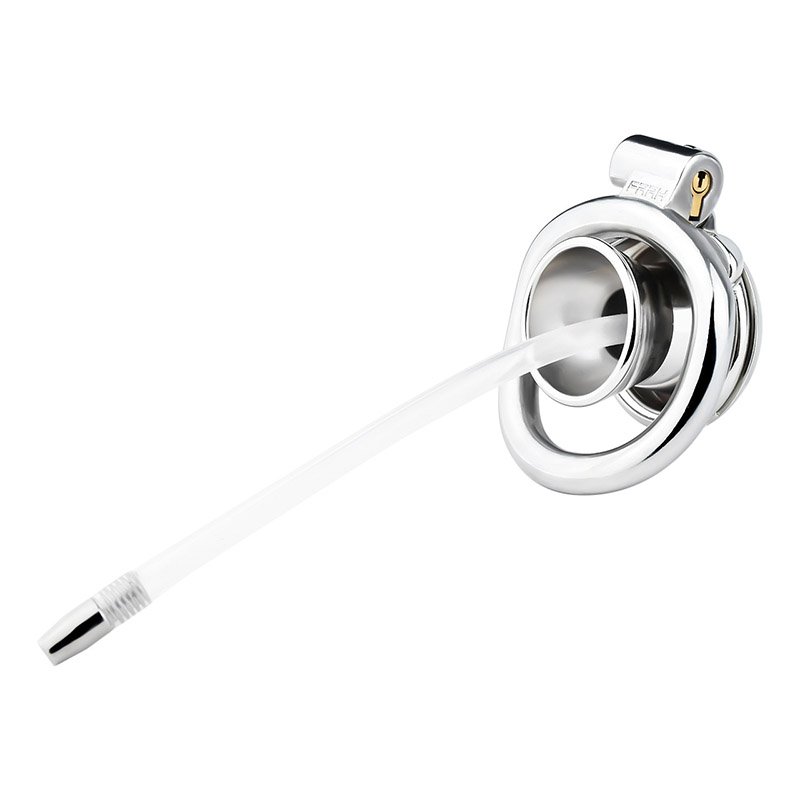 This stainless steel flat chastity cage is designed to provide a robust and versatile experience for users seeking both security and comfort. Made from high-quality stainless steel, it offers exceptional durability and resistance to wear, ensuring that it remains a reliable choice for long-term use. The flat profile is specifically engineered to fit snugly against the body, allowing for discreet wear beneath clothing while minimizing any discomfort. Featuring a urethral catheter in the center, this cage enhances the experience of control and submission, catering to those who enjoy the added stimulation and functionality. With four different ring sizes available, users can select the perfect fit to ensure both comfort and security, making it easy to find a configuration that works for their unique needs. The stainless steel material not only provides a cool, firm sensation but also contributes to a polished, sophisticated appearance that emphasizes the nature of restraint. This chastity cage is ideal for anyone looking to deepen their exploration of submission, combining elegance with practicality for a truly immersive experience.