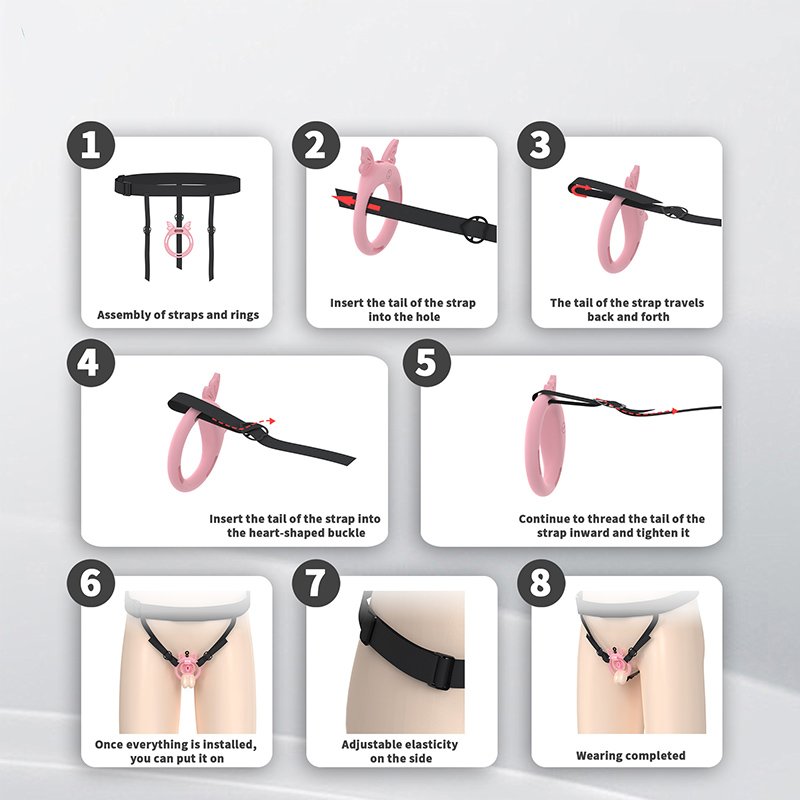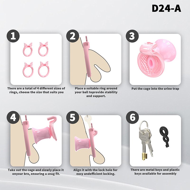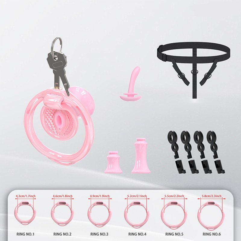 • Package Contents: Cage body*1, Retaining rings*6 (Butterfly rings*4), Concealed lock*1, Keys*2, Catheter*1, Plastic fasteners*4 (Waistband*1, Inverted plug*1)