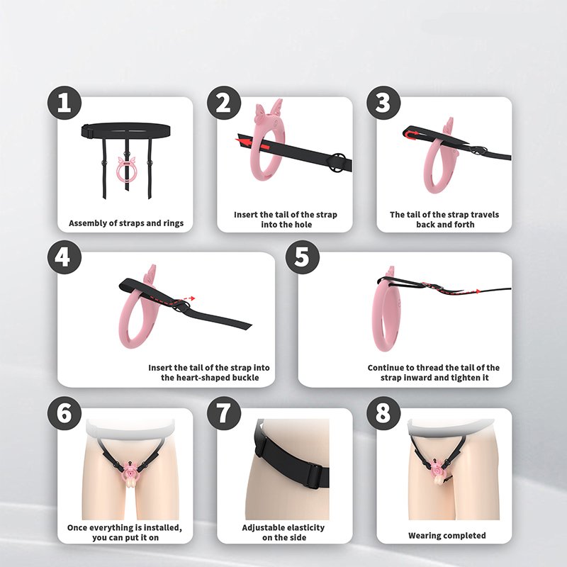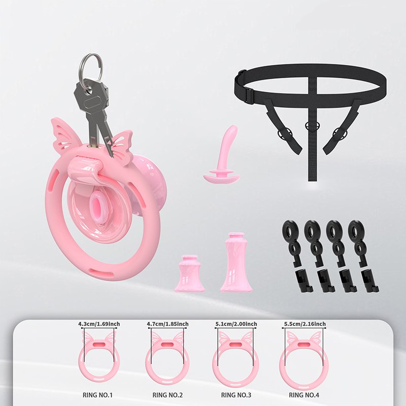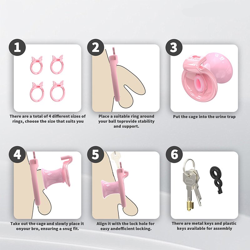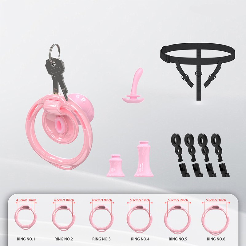 • Package Contents: Cage body*1, Retaining rings*6 (Butterfly rings*4), Concealed lock*1, Keys*2, Catheter*1, Plastic fasteners*4 (Waistband*1, Inverted plug*1)