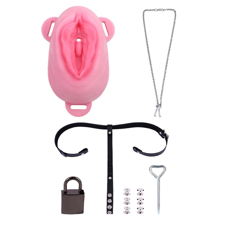 Male Chastity Cage Sissy Three Way Fixation Faux Labia