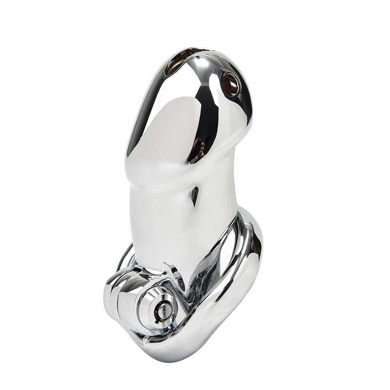 Experience refined control with this stainless steel chastity cage. The polished metal finish provides a modern, sophisticated look while ensuring durability and a secure fit. Designed to balance restraint and comfort, its snug shape restricts arousal, keeping you firmly in check. The cage features a specially designed locking mechanism for added security and ease of use, making locking and unlocking simple and efficient. The ventilated tip allows for breathability and hygiene, making it suitable for extended wear. Perfect for those exploring chastity play, this cage combines style and functionality for long-term or occasional use. Embrace surrender with this sleek, stainless steel cage.