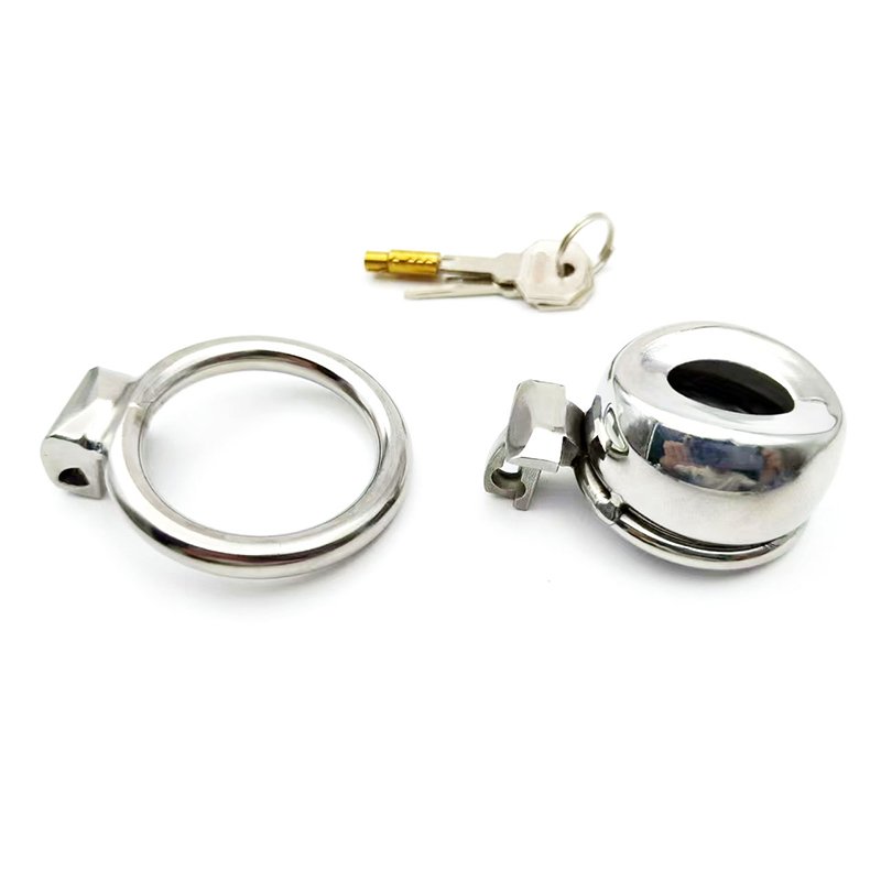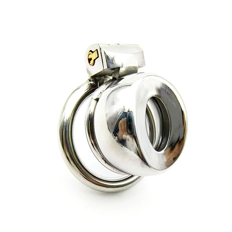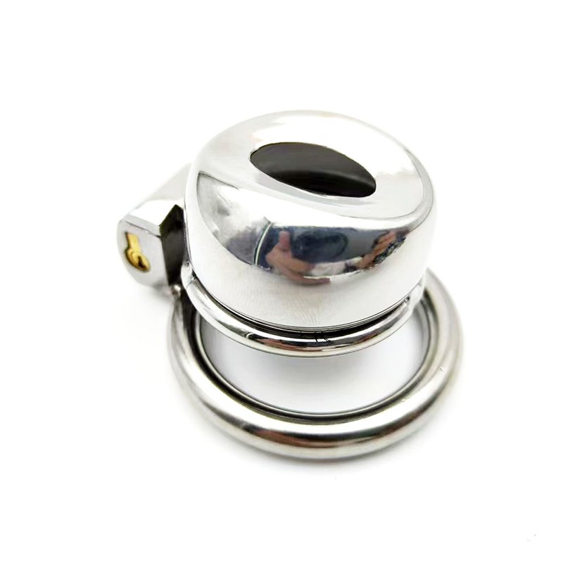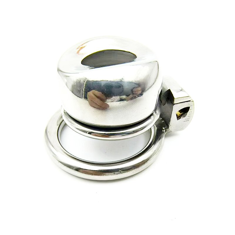 This sissy faux-vulva chastity cage is made entirely of metal, featuring a smooth, rounded surface and a solid, weighty build. Designed for those who crave deep submission and feminization, the flattened silhouette mimics the look of a faux vulva, enhancing the sense of shame and control. With a compact size of 45mm in length and 26mm in height, and a 22mm opening, it provides a tight and highly restrictive fit. The secure key-lock mechanism ensures it stays firmly in place with no chance of removal without permission. Weighing approximately 155g, it delivers a strong physical and psychological presence — the perfect device for sissies seeking full obedience and identity reinforcement.