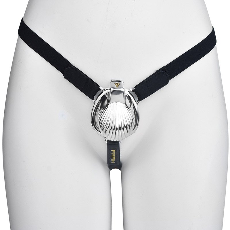 This chastity cage draws inspiration from the ocean, featuring a delicate shell-like design. The vertical ripple engravings on the surface add depth and an artistic touch, while the gold-plated finish gives it a luxurious shine, making it visually striking.The locking mechanism is positioned at the top, ensuring a secure fit. A drainage hole at the bottom combines aesthetics with practicality. The surrounding structure, along with the small side rings, enhances stability while adding a refined decorative element.This chastity cage is also available in a silver variant. While the gold version exudes opulence, the silver edition offers a more understated and sophisticated metallic charm. Whether you prefer a lavish look or a minimalist aesthetic, there’s an option to match your style.