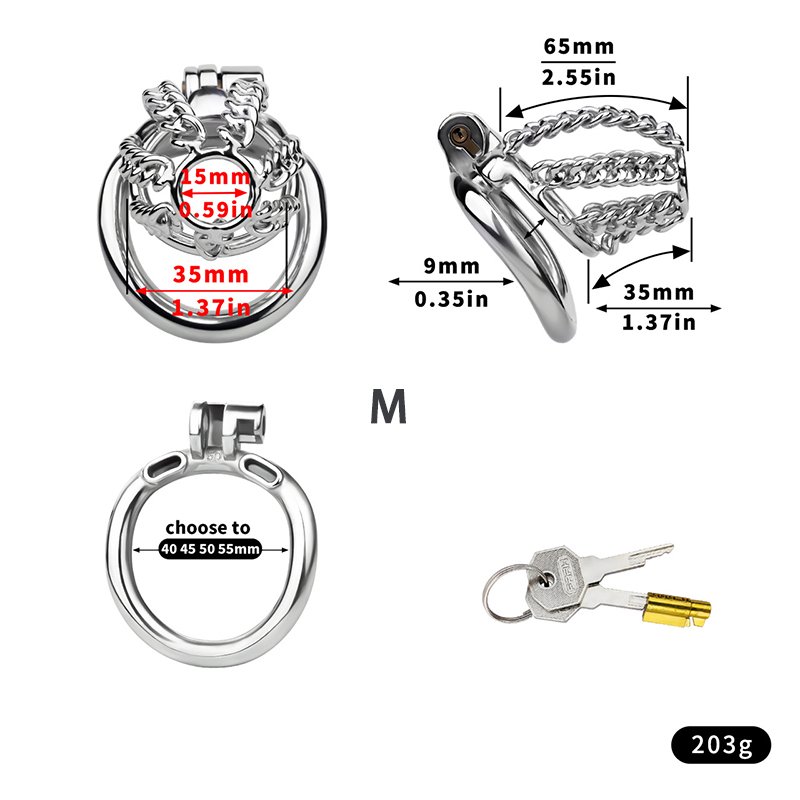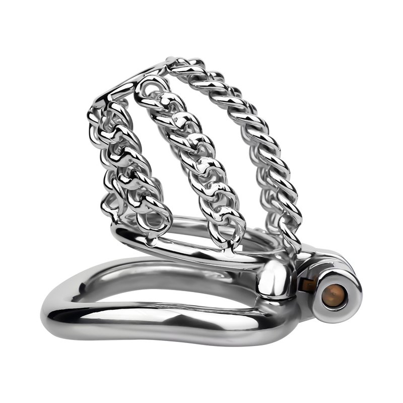 Metal Cock Cage Male Fixed Chain Design - Chastity Cage