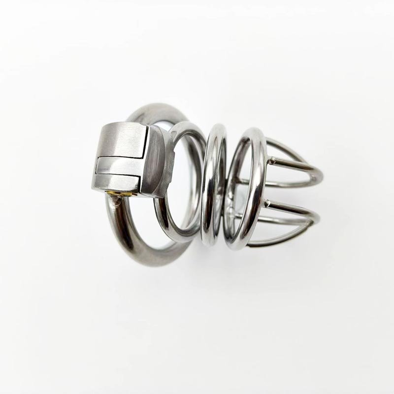 This metal chastity cage is designed with a unique spring-like structure, crafted from high-quality stainless steel for exceptional strength and long-lasting durability. The cage features numerous breathable perforations, ensuring optimal airflow and enhanced comfort during wear. The spring design offers flexibility and adaptability, providing a secure fit while remaining comfortable for extended periods.When purchasing, you can choose from three different ring sizes to ensure the most comfortable and secure fit tailored to your personal needs. This innovative design sets it apart from traditional models, offering a sleek, functional, and comfortable experience, whether for daily wear or special occasions.