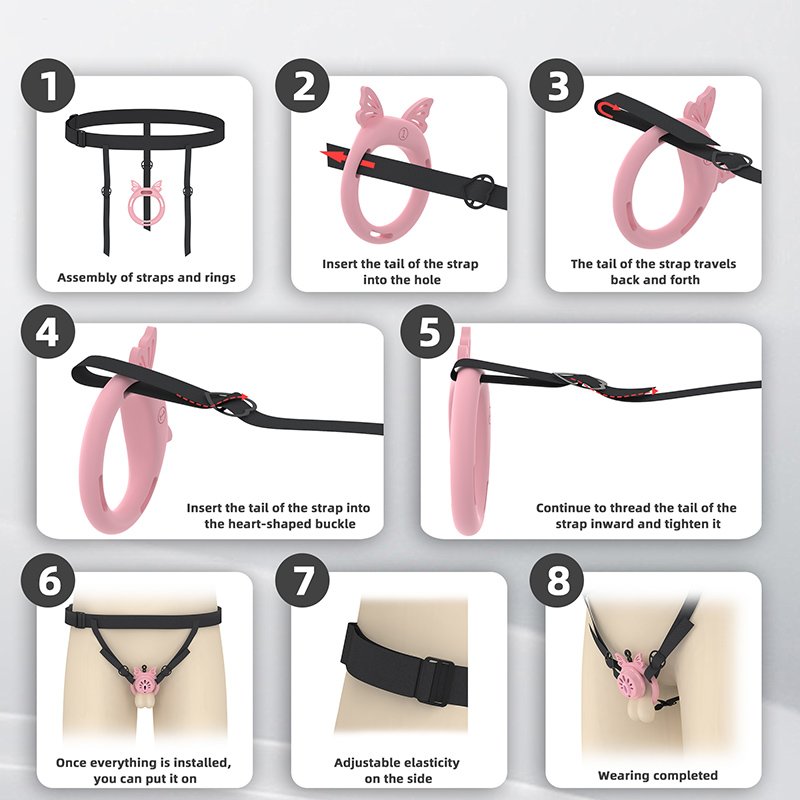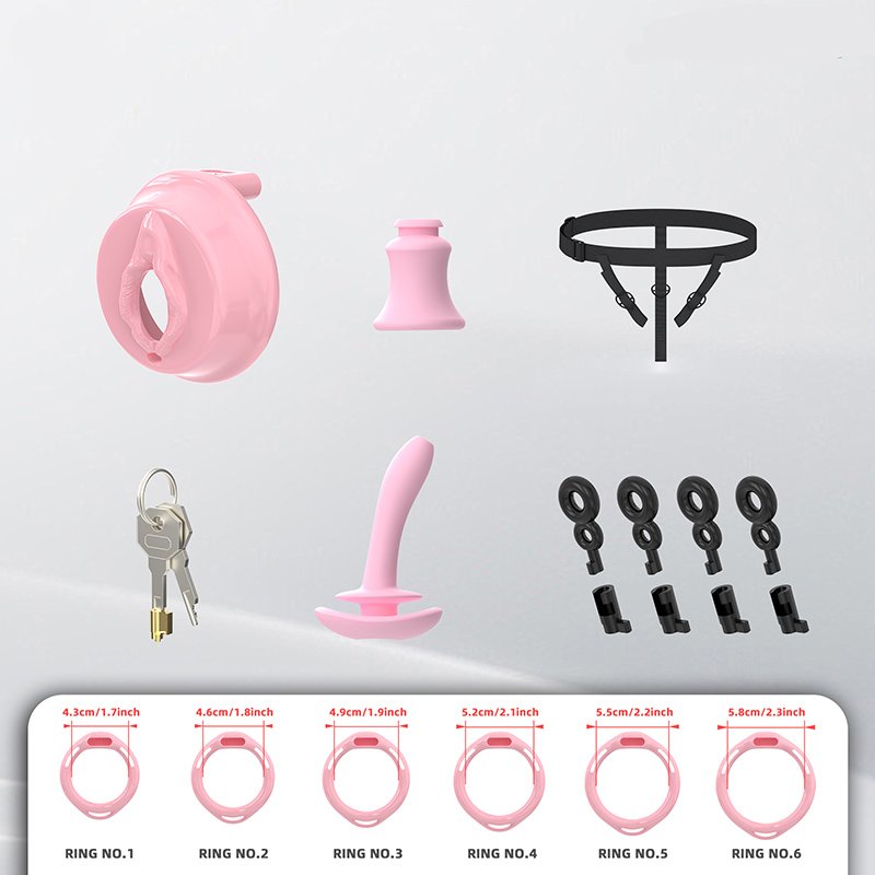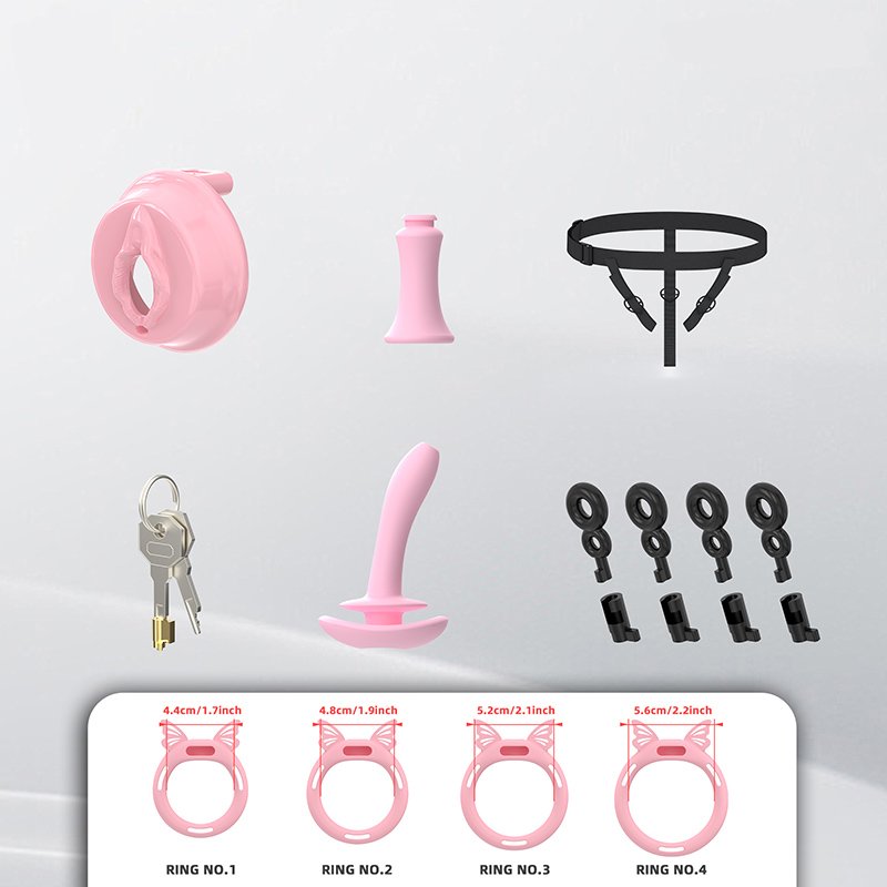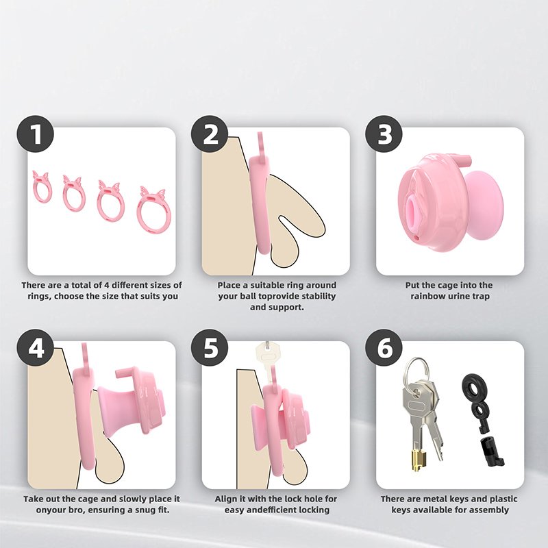 • Package Contents: Cage body*1, Fixing rings*4 (Clips*6), Concealed lock*1, Keys*2, Urinary catheter*1, Plastic locking buckles*4 (Belt buckle*1, Reverse plug*1)