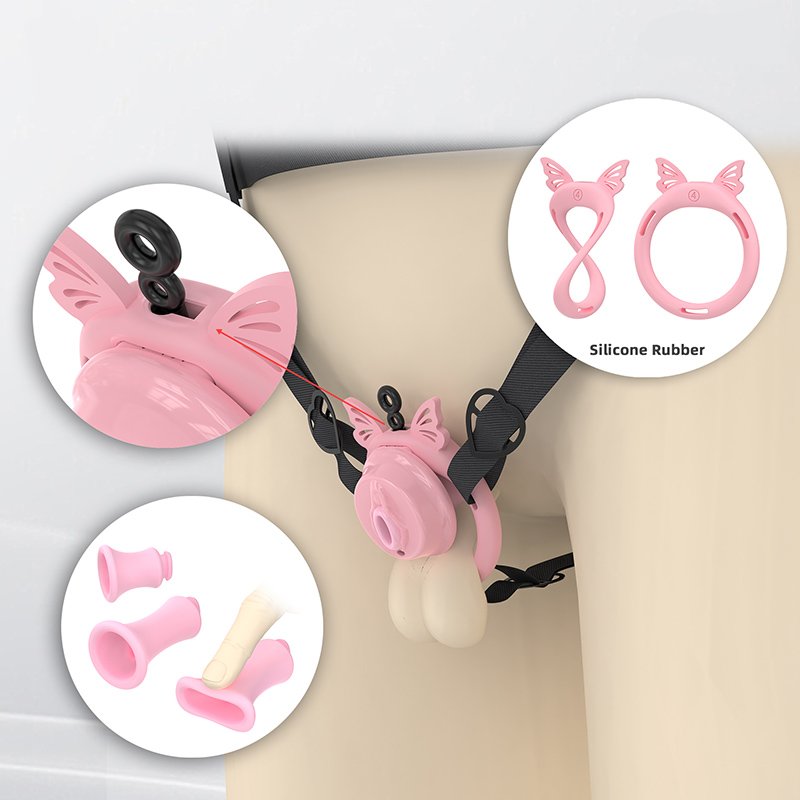 This piece combines elegance and playfulness with its butterfly-shaped ring, bringing a sense of lightness while ensuring security. Made from ABS material, the cage is both sturdy and lightweight, making it comfortable for longer wear without feeling heavy. The soft, skin-friendly touch adds to the overall comfort, while its breathable structure reduces heat buildup. Complete with a waist belt and catheter accessories, everything you need is included for a full experience. What makes it stand out even more is the added faux labia detail on the surface, creating a unique visual and psychological effect that enhances immersion whether for self-exploration or playful role scenarios.