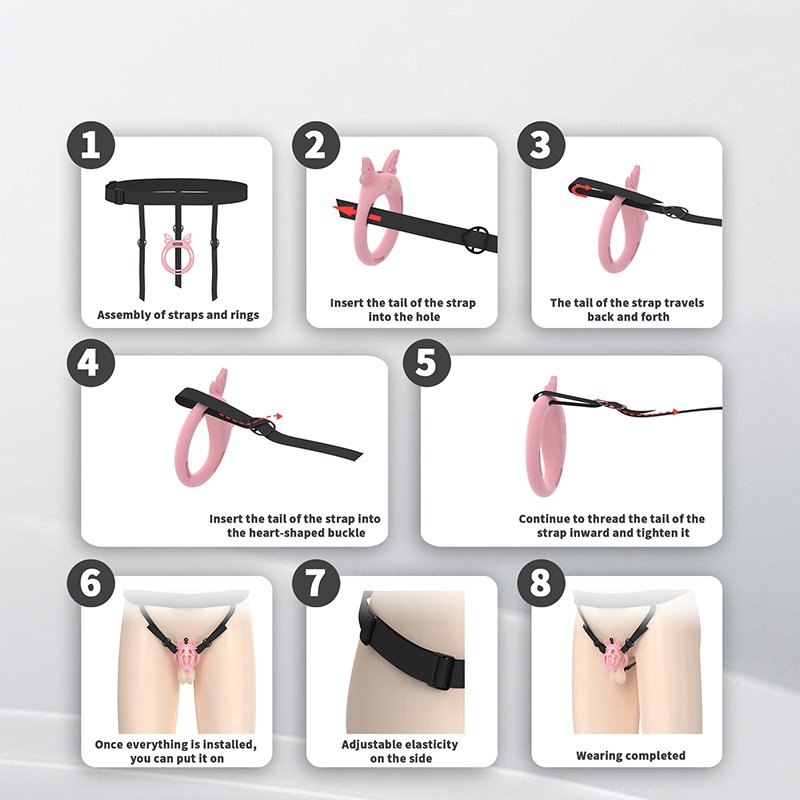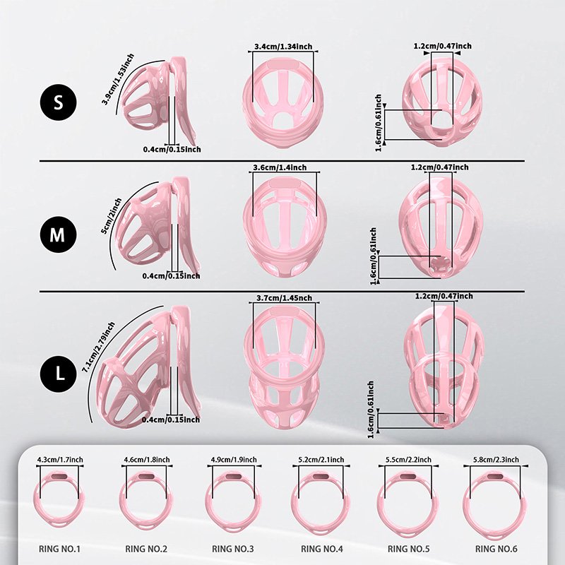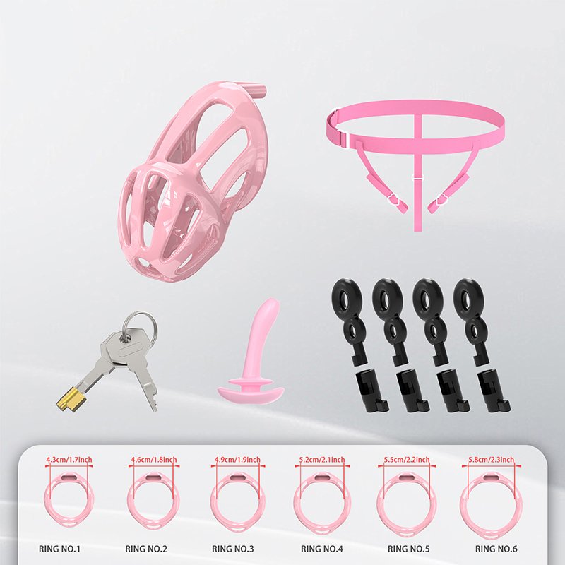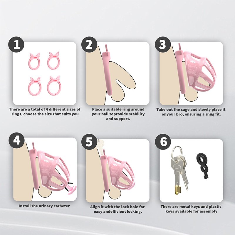 • Package Contents: Cage body*1, flat rings*6 (butterfly clips*4), hidden lock*1, keys*2, catheter tube*1, plastic locks*4 (belt*1)