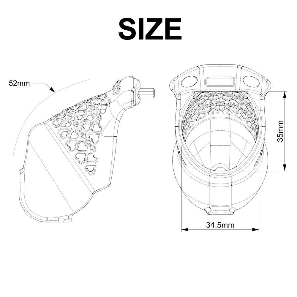 The Heart Hollow-out design is a perfect blend of aesthetics and functionality. The dense pattern provides excellent breathability, effectively preventing sweat accumulation and odors. Additionally, this design is very easy to clean—water flows right through the cage during a shower to rinse the interior, keeping it dry and hygienic 24/7.