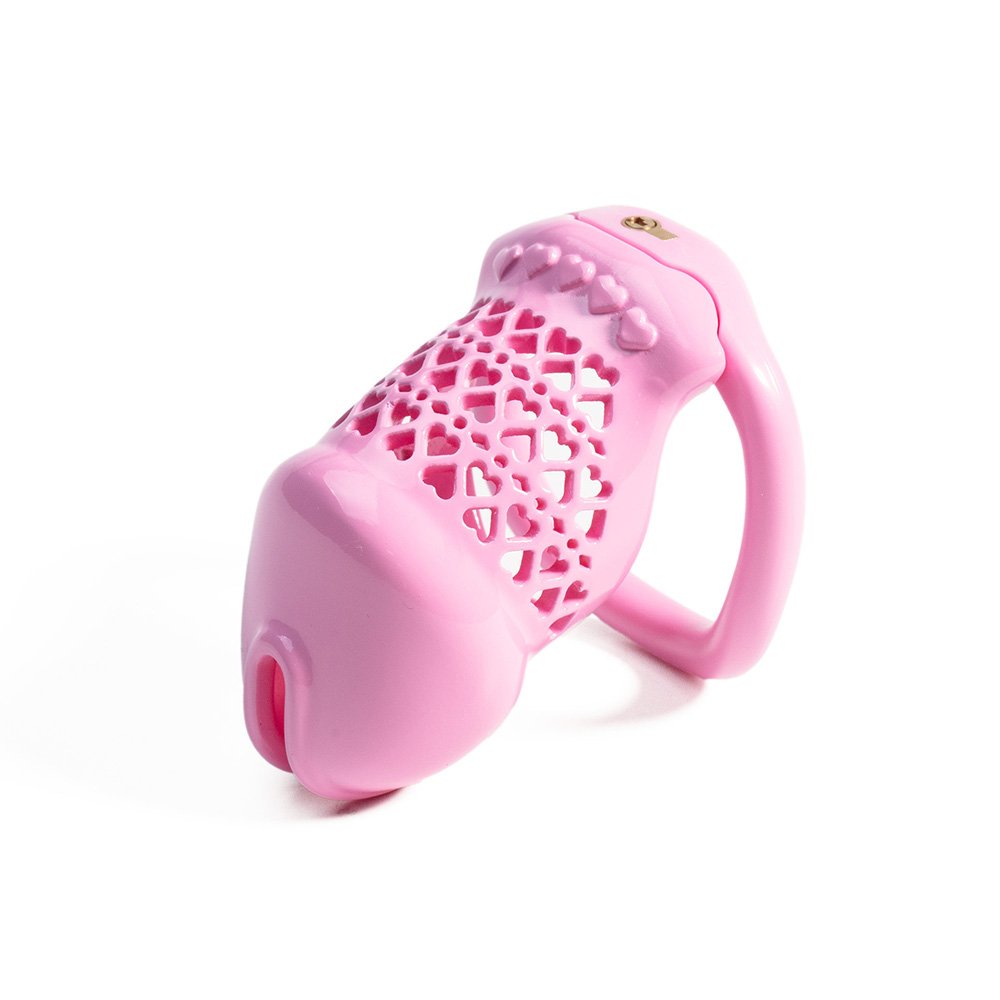 This Pink Resin Heart Chastity Cage combines a playful aesthetic with exceptional comfort. Crafted from lightweight, premium resin, the cage features an intricate heart-shaped hollow-out design that ensures maximum breathability and a smooth, skin-friendly touch. The vibrant pink finish is paired with a matching heart-headed key, adding a charming detail to this secure device. Its ergonomic integrated ring and seamless locking mechanism provide a flush, discreet fit, making it an ideal choice for CD/crossdressers seeking long-term wear and a romantic, feminine style.
