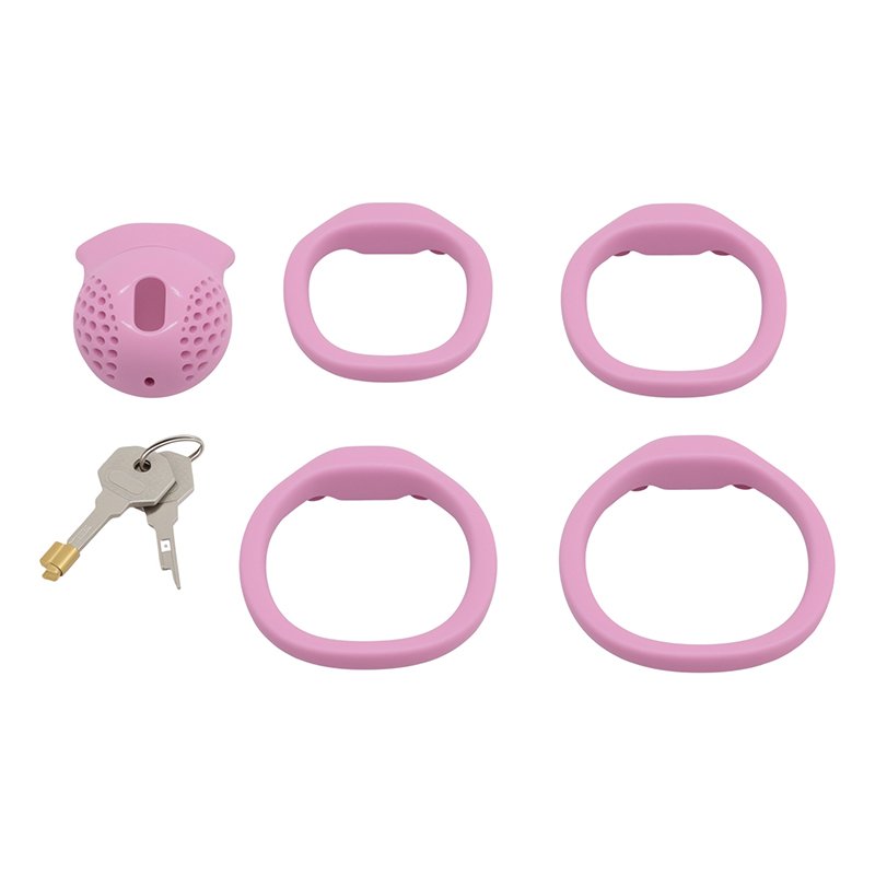 Crafted from lightweight resin using 3D printing technology, this sleek and compact cage features a honeycomb-style openwork that ensures breathability and comfort, even during extended wear. With both pink and black color options available, it offers a choice between playful charm and understated elegance. The set includes four different ring sizes, allowing for a customizable fit that suits a range of body types, making your wear both secure and comfortable for long-term use.