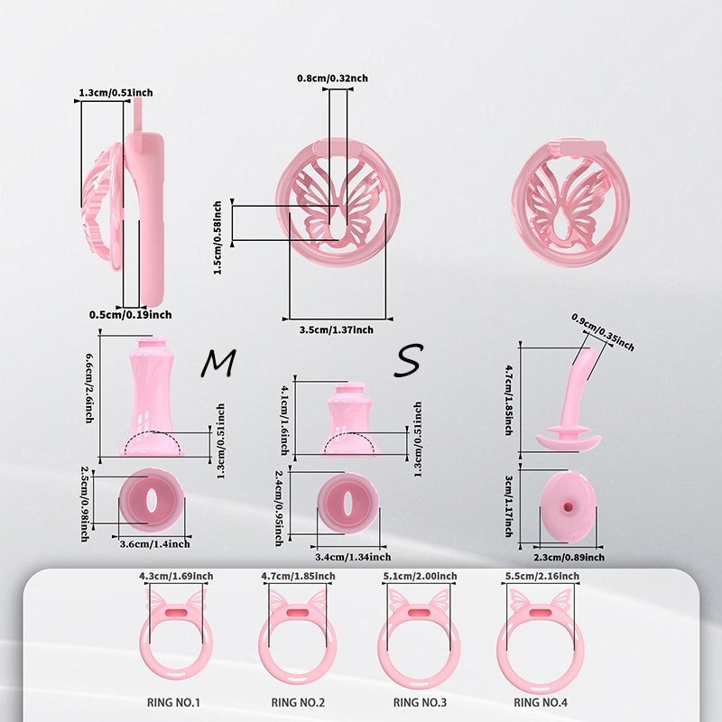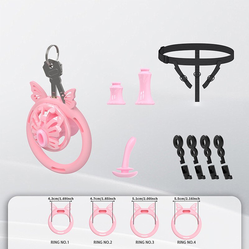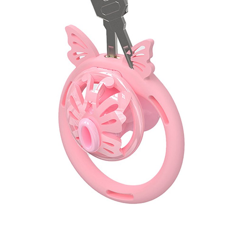 Sissy Chastity Cage Butterfly Pink Catheter - Chastity Cage