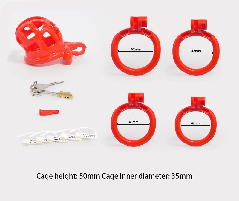 • Delivery list: 1 cage + 4 rings(41mm 45mm 48mm 52mm ) + 5 code locks + 1 locking pin + 1 brass secret lock